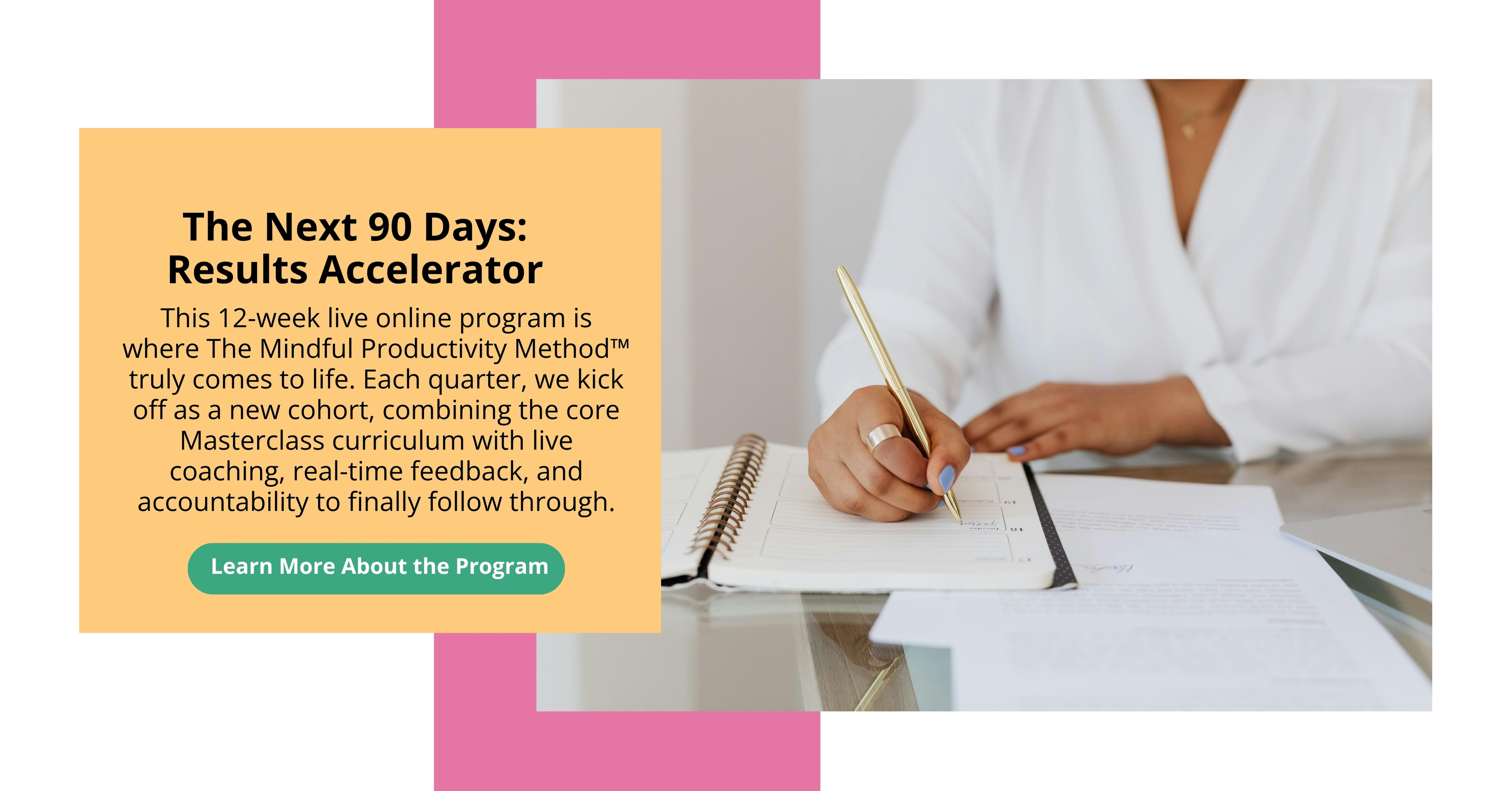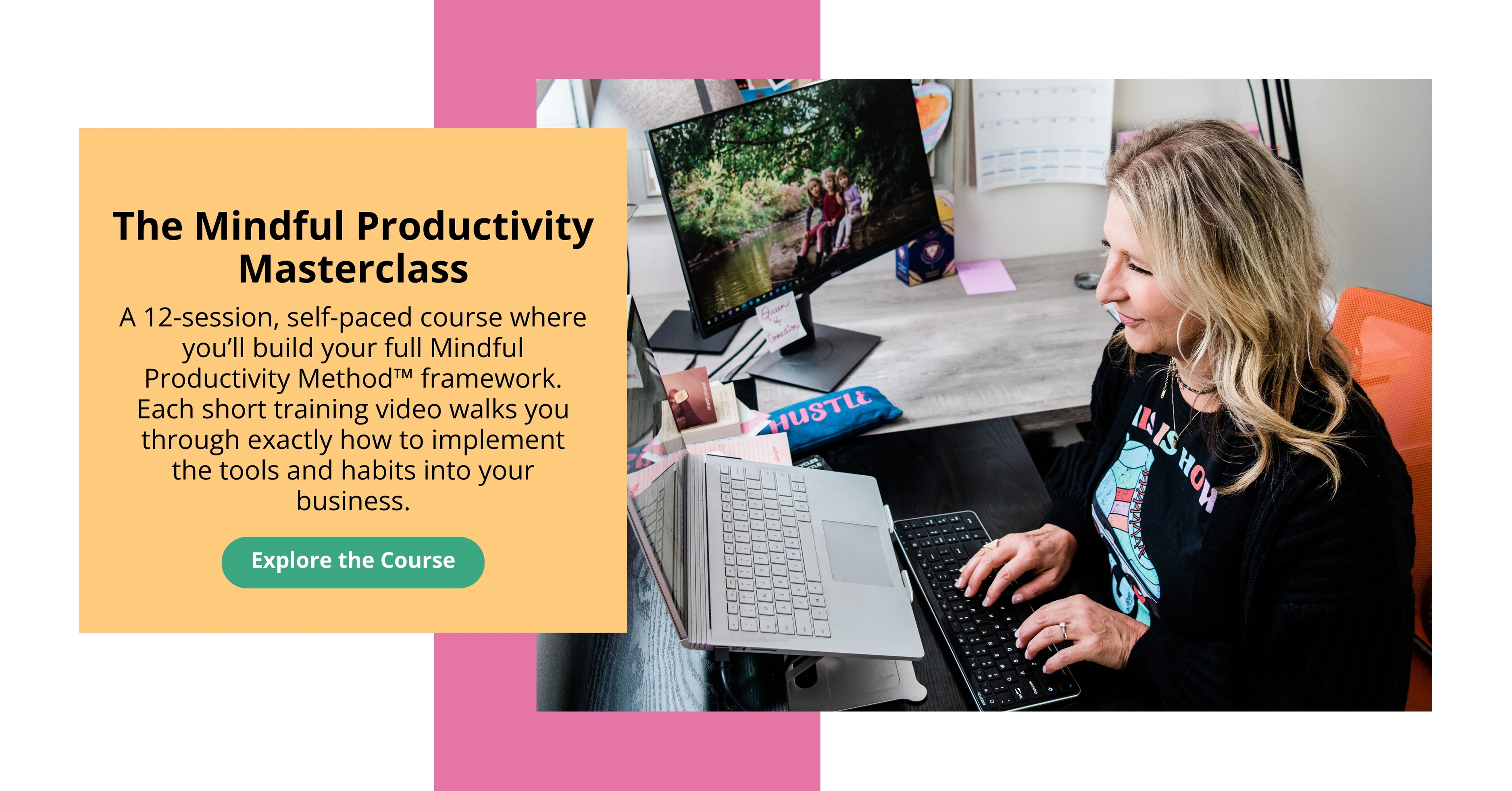 That’s why I created The Mindful Productivity Method™. Because you don’t need more willpower or determination (I know you’ve got plenty of that!) . You need a framework and the support that helps you hit your goals without burning out, allows you to close your laptop at the end of the day feeling proud instead of guilty, and to actually be present for the people and moments that matter most. AND build a business that’s scalable, sustainable, and worth loving again.